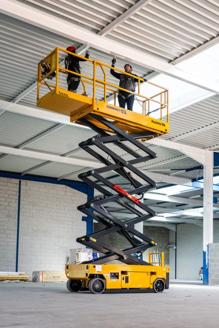 La plataforma de tijera eléctrica Genie GS-4047 es una máquina autopropulsada compacta y de alto rendimiento, diseñada para trabajos en altura en interiores y exteriores. Ofrece una altura de trabajo máxima de 13,7 metros, una capacidad de carga de 350 kg.